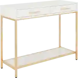 Your chic living room awaits with the stylish Altrissa console table. A white gloss finish combines elegantly with gold color chrome legs for a modern, sophisticated feel. Two ample storage drawers allow plenty of room for your belongings. Get the contemporary home you've been craving with the Altrissa. Customer assembly is required.