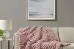 Absolutely. The solid blush tone—a sophisticated neutral in the beige family—and the "chunky knit" style make it a versatile piece for casual, farmhouse, or modern boho spaces. In a living room, try draping it over the corner of a sectional to soften the lines of the furniture and add an immediate sense of "hygge" or cozy comfort to the room.