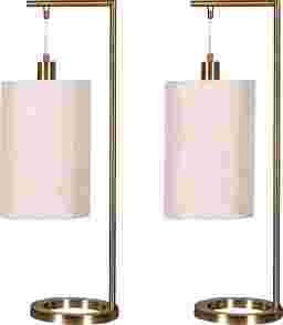 From bedside illumination to living room accent, the Altura Gate table lamp lights up your space in fabulous fashion. Featuring a base crafted of metal in a brass tone polish, this lamp pair's contemporary silhouette wouldn't be complete without the beige linen shade.