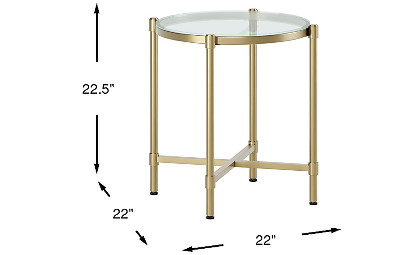 For both comfort and visual balance, an end table should ideally stand within two inches of your sofa's armrest. This table features a height of 22.5 inches, making it a perfect match for standard transitional sofas. Its round, 22-inch diameter also allows it to fit snugly in smaller seating arrangements without crowding the floor space.