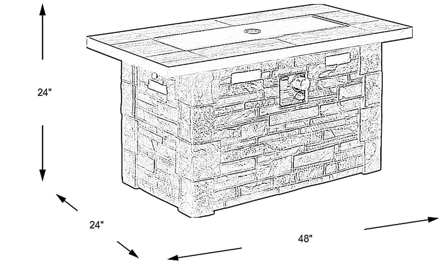 The Alvarado fire pit makes for a great centerpiece for your outdoor space. Featuring a rectangular design and stacked stone appearance, this piece has a very permanent feel. This fire pit accommodates a standard propane tank with 50,000 BTU (not included) and is activated with a push-button igniter. An included lid can protect your fire pit when not in use.