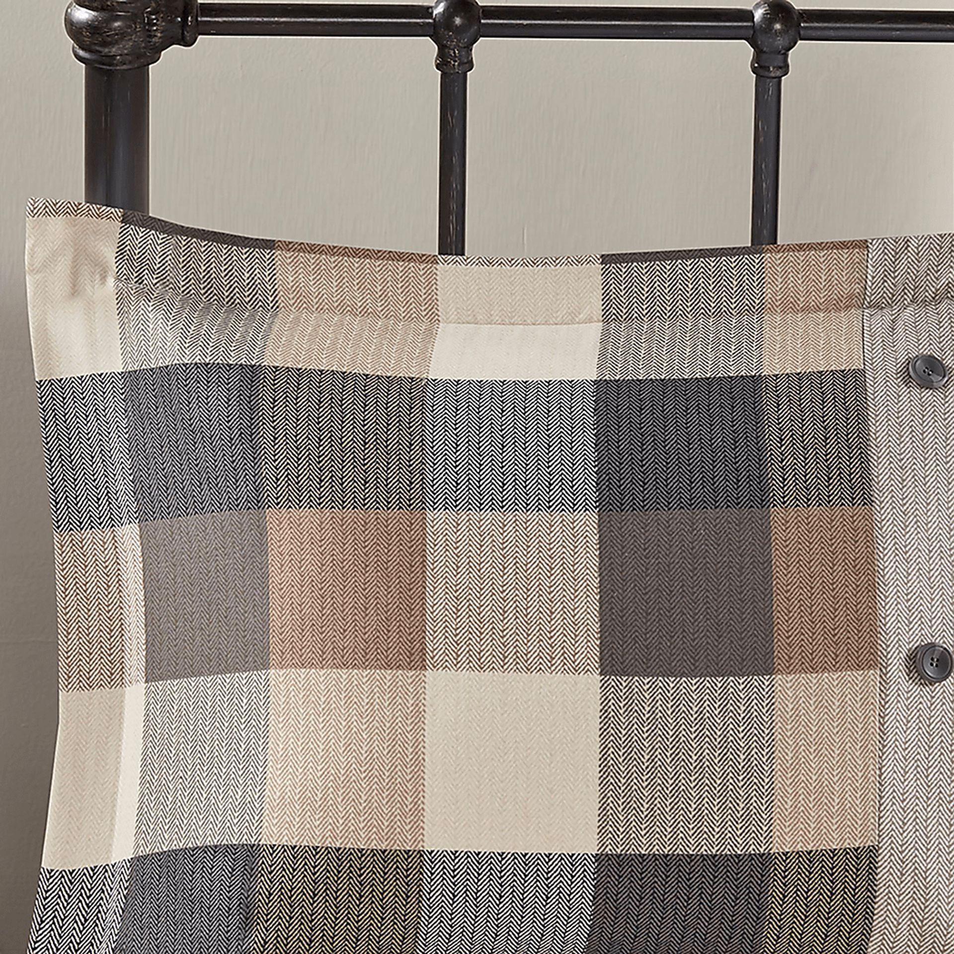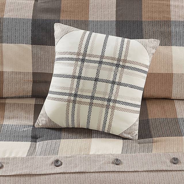 For an irresistibly warm and comfortable look, Amaeri 7 piece comforter set is the perfect update to your bed. This comforter sports a buffalo plaid pattern printed on herringbone fabric, for a cabin-inspired look. The bold design gives way to a printed herringbone border at the foot of the bed, adding a charming touch. Coordinating shams mimic the style of the comforter, enhancing the warm and cozy lodge aesthetic. Three decorative pillows with hand-stitched embroidered details bring texture and dimension to the top of the bed, while the print herringbone bed skirt offers a clean and handsome finish. Customer assembly is required.