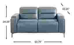 A modern interpretation of serene Italian living, the Drew & Jonathan Amalfi collection is where smooth curves meet tailored details with effortless grace. Contemporary in style, this loveseat is upholstered in supple navy blue top grain leather where the body touches. Refined stitching lends a clean, polished look, while track arms and silver tapered high legs add an airy, architectural touch. Each headrest can be adjusted manually to the position of your liking. Upholstery: Top grain leather where the body touches and polyurethane fabric sides and backs. Leather is a durable, low maintenance product, however, general regular maintenance is necessary. To keep your leather clean, vacuum it regularly, removing any dust, and clean it with water and a mild non-detergent soap.