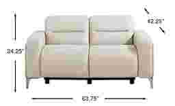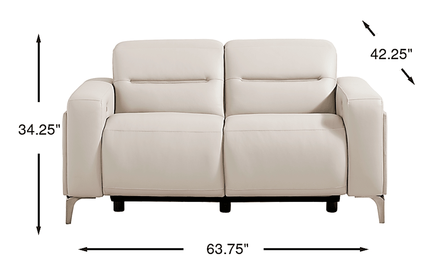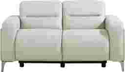 A modern interpretation of serene Italian living, the Drew & Jonathan Amalfi collection is where smooth curves meet tailored details with effortless grace. Contemporary in style, this loveseat is upholstered in supple light gray top grain leather where the body touches. Refined stitching lends a clean, polished look, while track arms and silver tapered high legs add an airy, architectural touch. Beneath its sleek design lies true comfort with dual power reclining, offering customized headrest and footrest adjustments through a zero-gravity mechanism that enhances relaxation in every position. A discreet control panel inside each arm features a convenient home button and built-in USB ports. Upholstery: Top grain leather where the body touches and polyurethane fabric sides and backs. Leather is a durable, low maintenance product, however, general regular maintenance is necessary. To keep your leather clean, vacuum it regularly, removing any dust, and clean it with water and a mild non-detergent soap.
