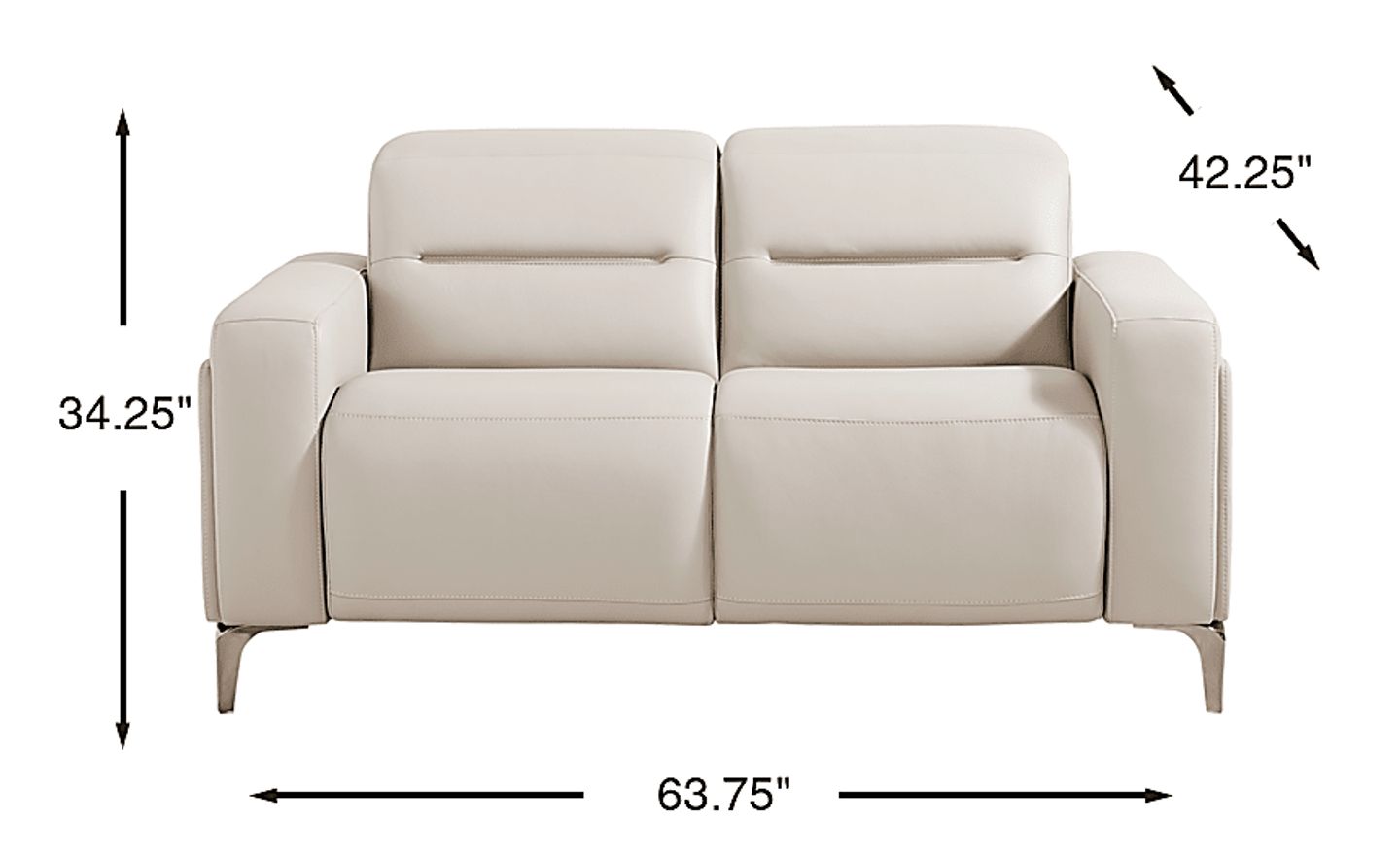 A modern interpretation of serene Italian living, the Drew & Jonathan Amalfi collection is where smooth curves meet tailored details with effortless grace. Contemporary in style, this loveseat is upholstered in supple light gray top grain leather where the body touches. Refined stitching lends a clean, polished look, while track arms and silver tapered high legs add an airy, architectural touch. Each headrest can be adjusted manually to the position of your liking. Upholstery: Top grain leather where the body touches and polyurethane fabric sides and backs. Leather is a durable, low maintenance product, however, general regular maintenance is necessary. To keep your leather clean, vacuum it regularly, removing any dust, and clean it with water and a mild non-detergent soap.