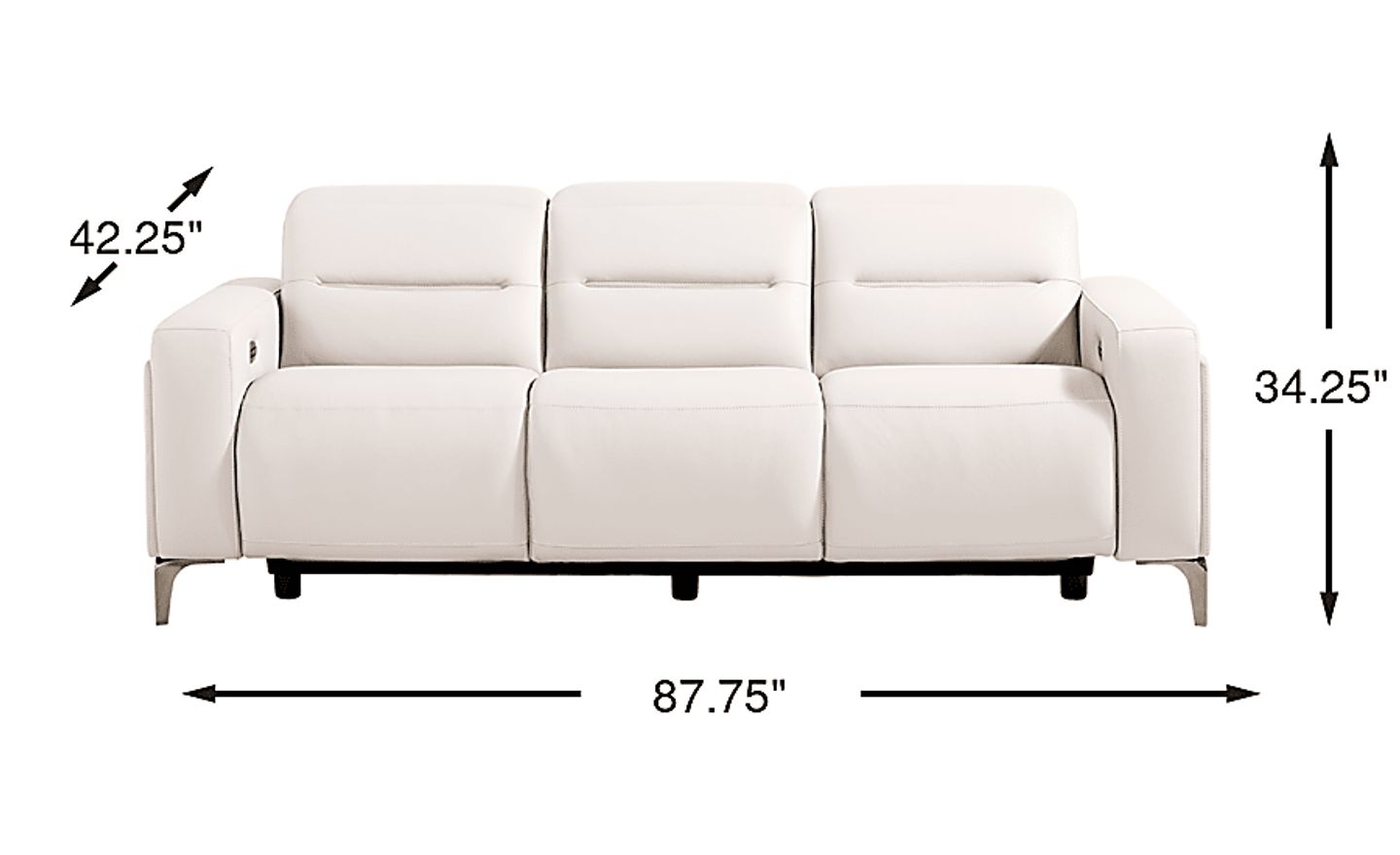 A modern interpretation of serene Italian living, the Drew & Jonathan Amalfi collection is where smooth curves meet tailored details with effortless grace. Contemporary in style, this sofa is upholstered in supple opulent white top grain leather where the body touches. Refined stitching lends a clean, polished look, while track arms and silver tapered high legs add an airy, architectural touch. Beneath its sleek design lies true comfort with dual power reclining, offering customized headrest and footrest adjustments through a zero-gravity mechanism that enhances relaxation in every position. A discreet control panel inside each arm features a convenient home button and built-in USB ports. The middle seat features a manual headrest, so every spot feels thoughtfully designed. Upholstery: Top grain leather where the body touches and polyurethane fabric sides and backs. Leather is a durable, low maintenance product, however, general regular maintenance is necessary. To keep your leather clean, vacuum it regularly, removing any dust, and clean it with water and a mild non-detergent soap.