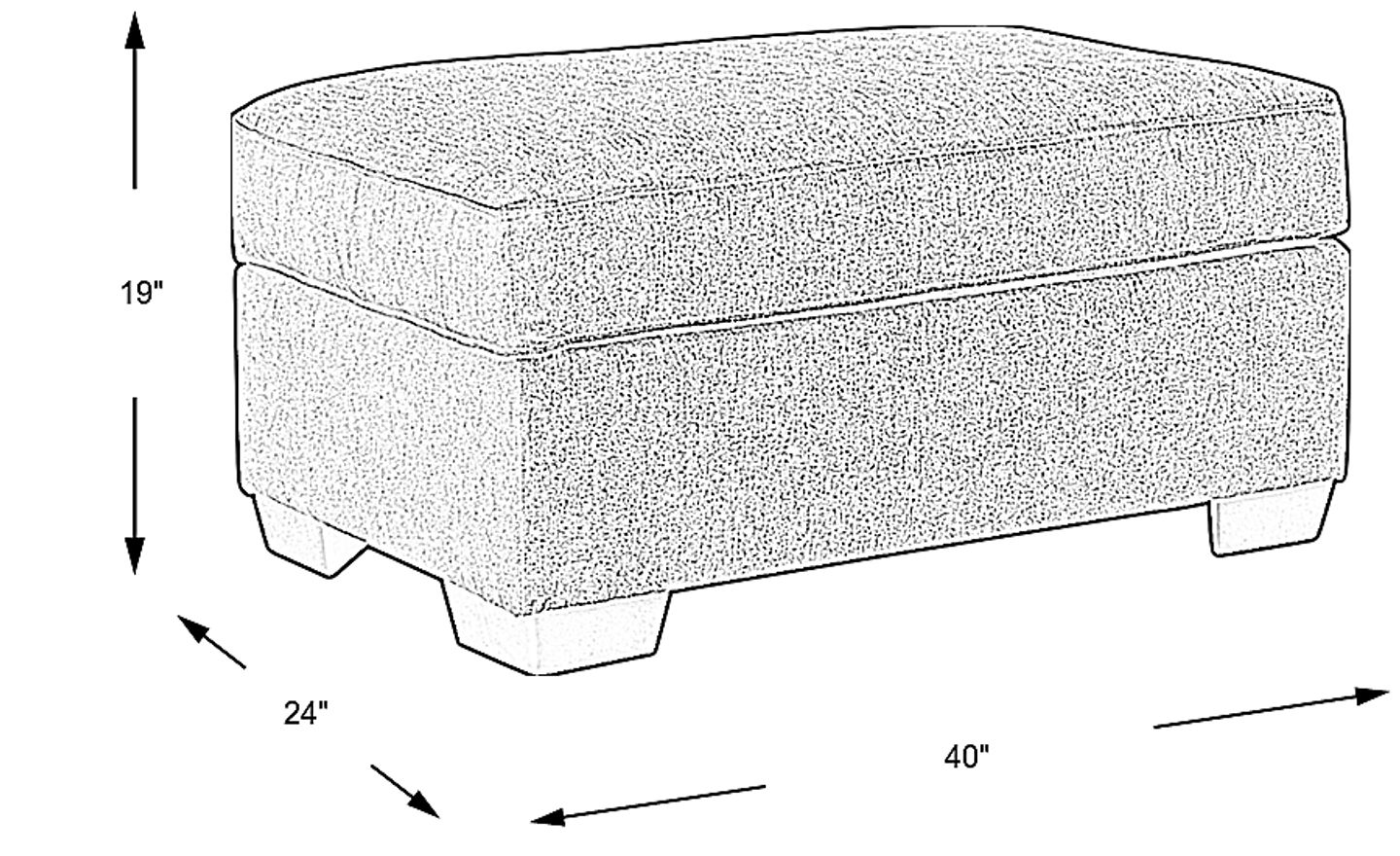 To achieve a balanced look, we recommend following the "two-thirds rule," where the ottoman is approximately two-thirds the length of your sofa. With a width of 40 inches, this piece is an ideal match for standard sofas ranging from 60 to 80 inches. Additionally, its 19-inch height is designed to sit level with or slightly below most standard seat cushions, ensuring a comfortable transition for use as a footrest.