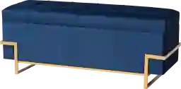 Upgrade your space with the glamorous seating and practical storage offered by the Amaral storage ottoman. Comprised of a sturdy wood frame padded with foam and upholstered in smooth navy blue velvet fabric. The cushioned lift-top seat opens to reveal ample storage space, perfect for the living room or as a bed end accent, resting on a chic gold finished metal base that lends the piece an eye-catching aesthetic. Extensive storage space, along with comfortable seating, distinguishes the storage ottoman as a fantastic upgrade to the modern home. Customer assembly is required.