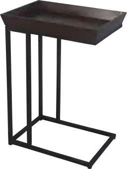 A traditional cherry finish with removable tray top and metal frame is about to become your new favorite piece of furniture! The Amarella accent table's C-shape is sure to serve you just as functional as it is decorative. Use the tray to put T.V. controllers and a magazine on or utilize as a place to set you coffee. This C-Table is sure to be your favorite utility table. Customer assembly is required.