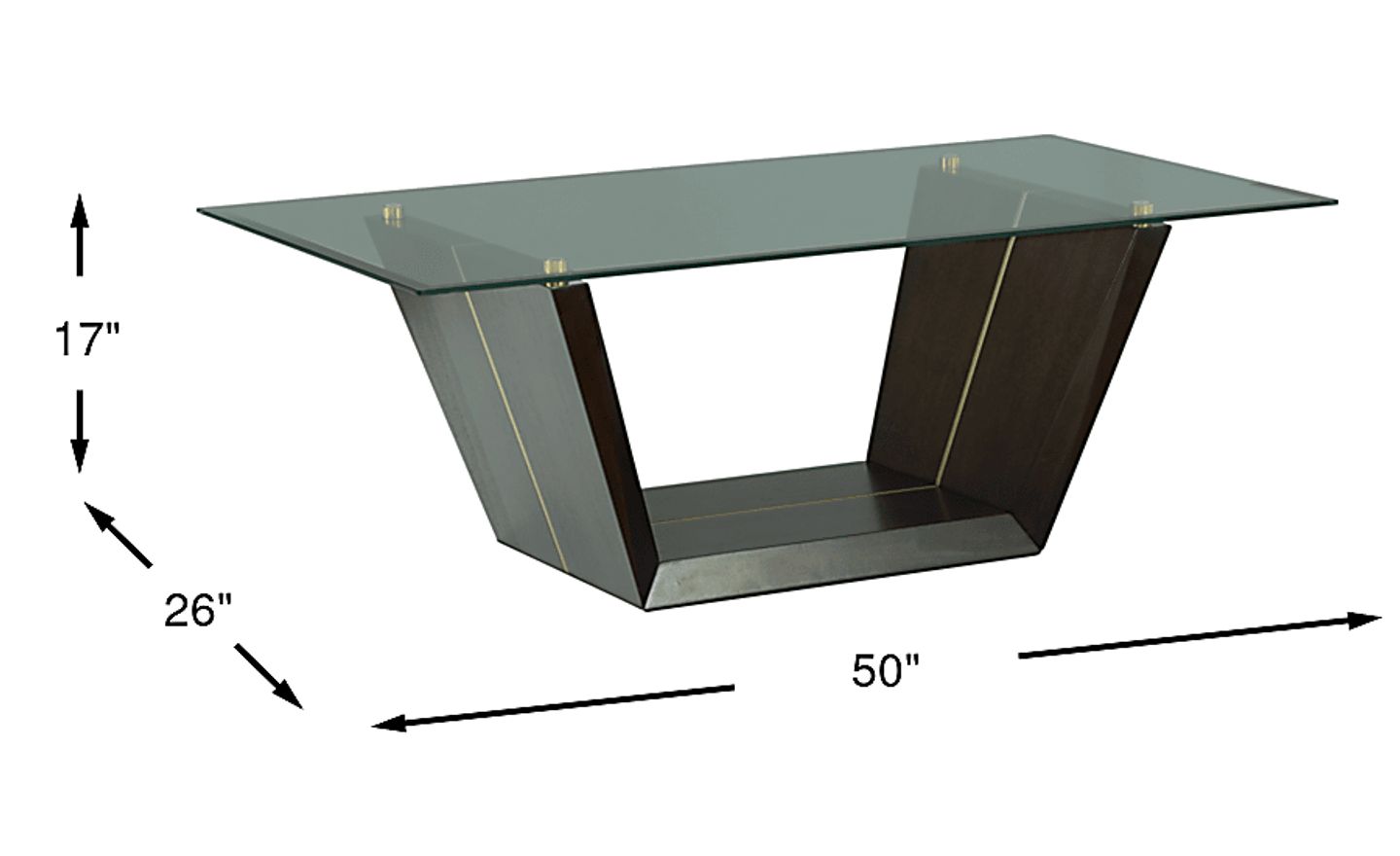 Upgrade your space with the contemporary design of the Ambassador Place cocktail table. Crafted of espresso-finished white ash veneers, this piece features a modern inspired glass top that occupies minimal visual space and gold accents for a glam touch, making it ideal for modern inspired ensembles. Its hollow base is ideal for displaying knickknacks or storing your favorite books. Customer assembly required.