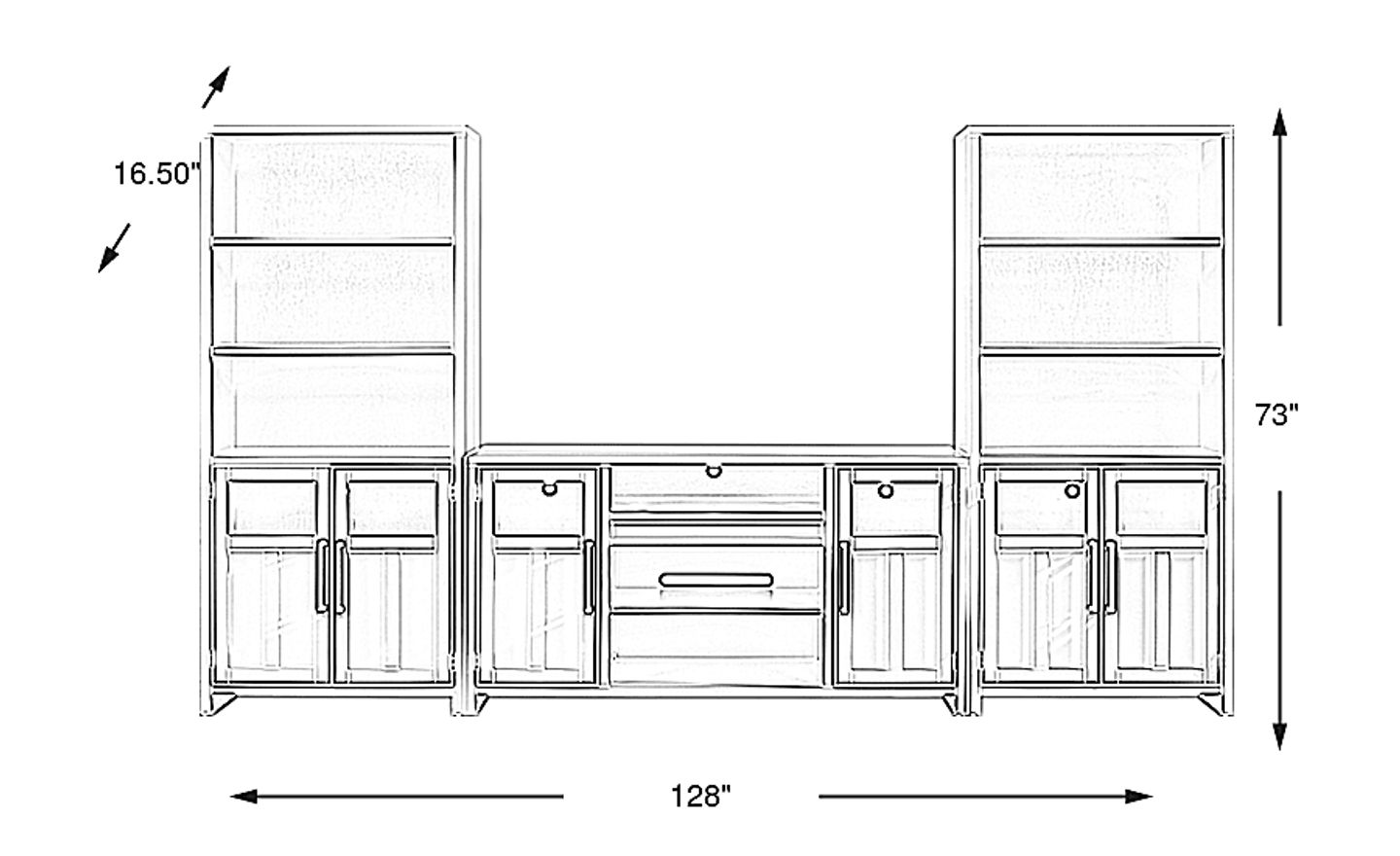 128.00"w x 16.50"d x 73.00"h