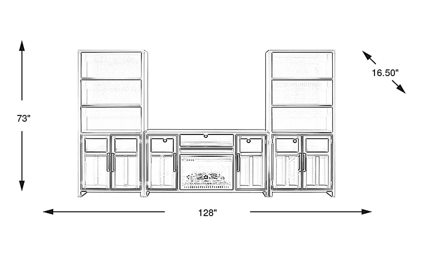 128.00"w x 16.50"d x 73.00"h