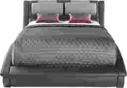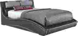 Transform your bedroom with the Amberley bed. Sleek black Ultrahyde and contemporary curves make this modern bed a unique focal point. Gray headrests provide a sophisticated contrast of color as well as comfortable support for reading or watching TV in bed. This bed requires a mattress and two bed boards only, no box spring is needed. Bed shown is queen size.