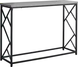 Enhance the entryway of your small home, condo or apartment with this minimalist Ambur accent table that will allow you to showcase the beauty of your decor thanks to ample surface space. Finished in a gray wash wood look, this sturdy, black metal framed hallway table can match any decor style with an appealing criss-cross design. It is perfect for any decorations and accessories such as your books, glasses, photo frames and plants. Customer assembly is required.