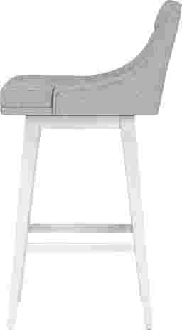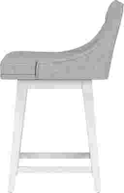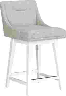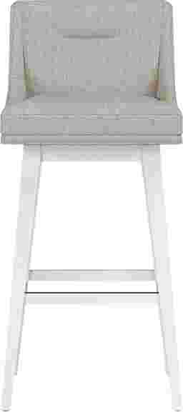 Curate your dining experience with this premium, Amenophis adjustable-height stool with customizable features, such as a solid wood base with steel-reinforced leg extensions. This seat is characterized by its arms that gently slope toward the base, resulting in a sleek, casual transitional appearance, and the detachable swivel plate enables either a 360-degree swivel or a stationary setting. Upholstered in a neutral oatmeal shade, this kid-friendly, pet-friendly fabric is stain resistant and easy to clean, and it complements the pure white finish of the base. Customer assembly is required.