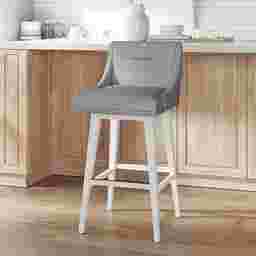 This stool is an excellent choice for compact living spaces. With a 20-inch width and sleek arms that gently slope toward the base, it provides the comfort of a full-back seat without the bulky footprint of traditional armchairs. The transitional style and "white-on-gray" color palette also help maintain a bright, airy aesthetic that can make smaller kitchens feel more open and uncluttered.