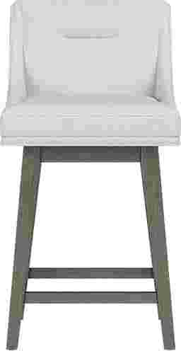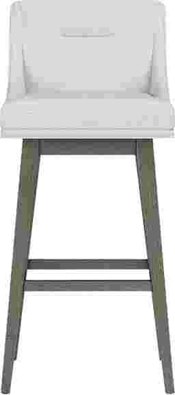 Curate your dining experience with this premium, Amenophis adjustable-height stool with customizable features, such as a solid wood base with steel-reinforced leg extensions. This seat is characterized by its arms that gently slope toward the base, resulting in a sleek, casual transitional appearance, and the detachable swivel plate enables either a 360-degree swivel or a stationary setting. Upholstered in a neutral salt shade, this kid-friendly, pet-friendly fabric is stain resistant and easy to clean, and it complements the gray wash finish of the base. Customer assembly is required.