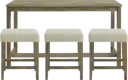 This complete set includes one rectangular bar-height table and three matching stools. The stools feature natural-colored upholstered seats, providing a layer of cushioned comfort that is essential for longer periods of use. The combination of the padded seating and the straight-leg base design ensures a stable and supportive experience whether you are enjoying a meal or a focused afternoon of work.