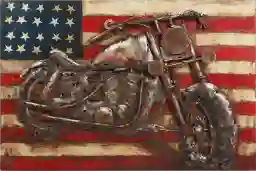 Metal sculptures are a staple of modern and industrial design because they introduce raw, textural elements to a room. This piece’s iron construction and motorcycle subject matter lean into an "industrial-chic" aesthetic, while the Americana style adds a touch of classic, nostalgic warmth. It is particularly effective when paired with neutral upholstery, leather seating, or exposed brick walls.