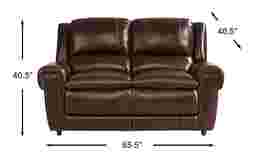 Perfect for two, the Amesbury loveseat provides stylish seating for additional guests. Padded armrests, footrests and seat cushions ensure comfy support while square arms add an on-trend look. Brown top grain leather where the body touches add an elegant touch as the subdued color invites calm warmth to the room. Channeled backs, contrast stitching and burnish brass nail head trim complete the transitional style. Upholstery: Top grain leather where the body touches and polyurethane fabric sides and backs.