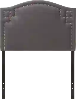 Transform your space into a luxurious hideaway with the Ameswooda dark gray twin headboard. The beautiful nail head detailing cornering the headboard adds that subtle sparkle that every glamorous bedroom dreams of. Constructed of solid rubberwood frame and plywood, the headboard is built to last. Soft polyester fabric in dark gray over the foam filled headboard provides ample comfort for you to lean against. Leg supports are invisible once set up and can be adjusted to suit the height of your ensemble for convenience. Headboard sits between the wall and the ensemble frame, attaching not to the bed base but to the legs, for stability. Customer assembly is required.