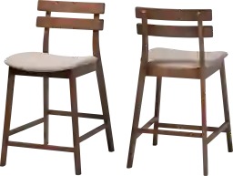 Build a modern aesthetic in your dining space with Ammerse counter stool. Finished in a walnut brown rubberwood with light gray upholstered polyester fabric in crosshatch pattern. Features a curved backrest and solid footrest on all four sides. Includes two counter stools. Designed with style, comfort and suitable for use for pub tables and kitchen counters. Customer assembly is required.