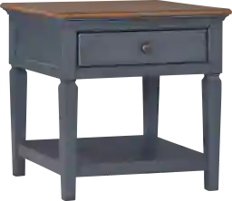 The 24 inch Amoyr Blue End Table boasts a refreshing coastal twist on traditional style. Skillfully crafted from rubberwood solids and birch veneers, the subtle distressing, corduroy blue finish and antique pewter hardware give this side table an updated look with a timeless heirloom feel. Featuring one drawer and one lower shelf, this accent table is the ideal spot to showcase a table lamp and home decor up top with a throw or blanket on the shelf below. Just like baseball, apple pie and rock & roll, the Amoyr Blue End Table will become a beloved favorite in your home. Fully assembled upon arrival, this piece is ready to unbox and enjoy.