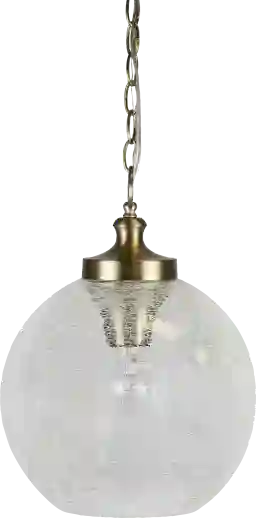 The unique Amparo Park pendant has just the right amount of sleek style and eye-catching flair. The elegant clear crackle glass shade hangs off the gold plated, adjustable metal chain, which has a maximum length of 72. When lit, it will perfectly diffuse the light within, and cast a unique pattern on its surroundings. Professional installation by an electrician is recommended.