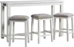 With a slim 20-inch depth and a 60-inch width, this bar set is an ideal space-saving solution for urban apartments or compact kitchen nooks. Its narrow profile allows it to provide a functional dining or work surface without obstructing foot traffic in high-activity areas. Additionally, the white finish helps reflect natural light, which can make smaller rooms feel more open and airy.