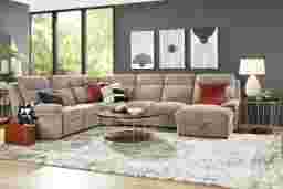 Like the deep calm and tranquil stillness of a private suite, the Anaheim collection embraces you with comfort that's effortlessly elegant. Upholstered in soft beige chenille, this contemporary sectional features subtly padded track arms and deep tufted back cushions for a clean profile and indulgent relaxation. Dual power reclining allows personalized adjustment of both headrest and footrest. For added convenience, USB ports are built into each reclining control panel, keeping devices powered without interrupting your downtime. The hidden pop-up sleeper offers an easy solution for overnight guests, while a storage chaise keeps essentials neatly tucked away. Upholstery: 100% Polyester.