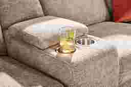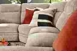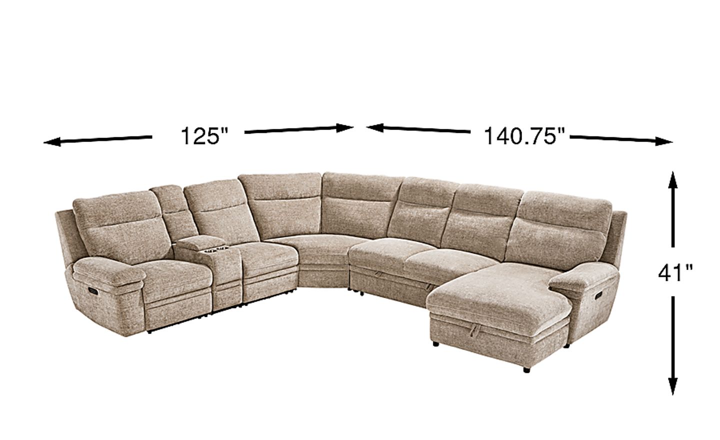 Like the deep calm and tranquil stillness of a private suite, the Anaheim collection embraces you with comfort that's effortlessly elegant. Upholstered in soft beige chenille, this contemporary sectional features subtly padded track arms and deep tufted back cushions for a clean profile and indulgent relaxation. Dual power reclining allows personalized adjustment of both headrest and footrest, while the hidden pop-up sleeper offers an easy solution for overnight guests. A storage chaise keeps essentials neatly tucked away, and the built-in console features stainless steel cupholders, interior storage, and integrated charging ports. For added convenience, USB ports are built into each reclining control panel, keeping devices powered without interrupting your downtime. Upholstery: 100% Polyester.