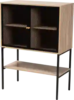 Satisfy and exceed the needs of your kitchen with the remarkable design of the Anapra brown sideboard. This exquisite piece consists of a wood frame supplemented by a metal base. The mesh metal doors enable a clear view of your available cookware or ingredients while exuding industrial appeal. The Anapra features four interior shelves behind the doors while the wide, open shelf underneath accommodates larger items. An effectual yet charming addition, the Anapra sideboard is a fantastic upgrade for any kitchen. Customer assembly is required.