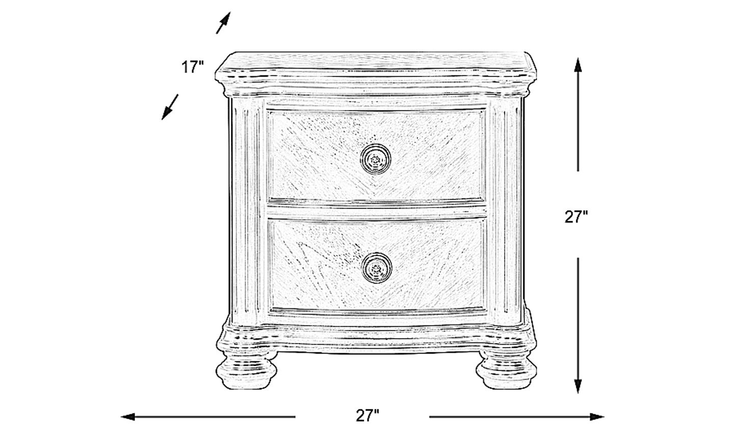 Practical and pretty, the Anastasia nightstand lends traditional style to your sleeping space. Made with oak veneers with a classic brown finish, the nightstand offers two storage drawers for keeping essentials out of sight. Turned legs and metallic hardware create an elegant finishing touch.