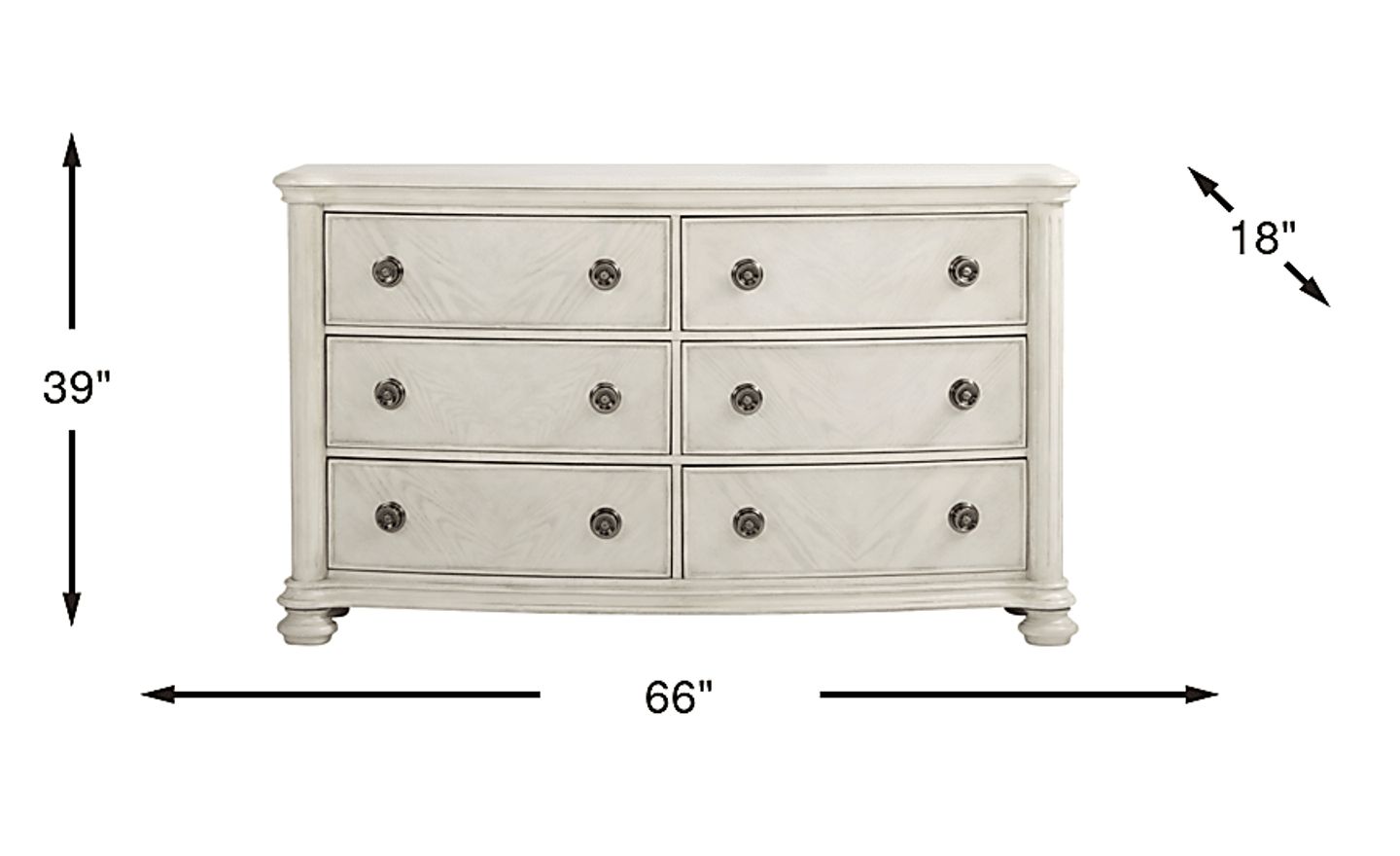 The stately design and ample storage room of the Anastasia dresser offer a perfect haven for your clothing and personal items. It's crafted of oak veneers with a white lacquer finish and features transitional inspired turned feet. Style elements include metal hardware with an intricate knob pattern and a brushed finish for an antique inspired look.