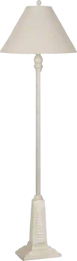 With its "Low Country" cottage aesthetic and distressed white finish, this floor lamp is ideally suited for coastal, shabby-chic, or farmhouse-inspired interiors. Its weathered texture provides a relaxed, airy feel that complements the breezy, sun-drenched decor commonly found in Florida or coastal Texas homes.