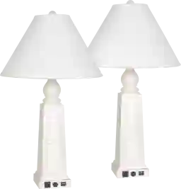 These lamps feature integrated USB ports built directly into the base for modern convenience. Because these are "plug-in" lamps, they provide a consistent power source to charge smartphones, tablets, or e-readers without the need for extra wall adapters. This feature is particularly useful for reducing cord clutter on nightstands or in home offices where outlet access may be limited.