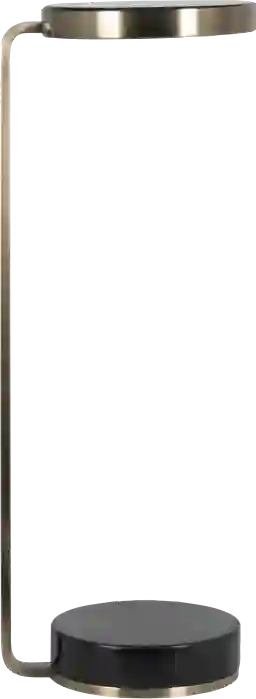 The Andarella black accent table is a contemporary C-table for drinks in black marble with a brushed bronze and gold metal finish.