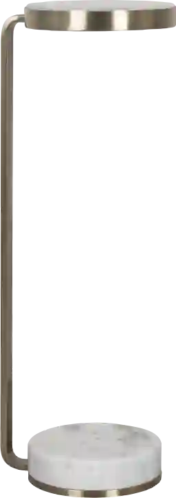 The Andarella white accent table is a contemporary C-table for drinks in white marble with a brushed bronze and gold metal finish.