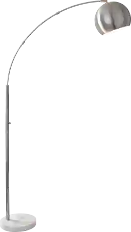 With a slim arched arm and a large dome-shaped metal shade the Andes Way floor lamp is a great way to achieve overhead lighting with style. A 150 Watt bulb can illuminate a large sitting area while an brushed steel finish and chunky white marble base complement the decor of any room. Partial assembly may be required.