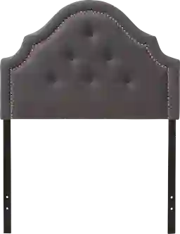 The beautiful curves of the Andicei dark gray twin headboard will have you feeling like royalty each night. With a nod to classic French design, this headboard is decadent and utterly divine. For those who seek to add a touch of luxury to their bedroom, the Andicei will almost instantly glam up any space with its silver nail heads trim, creating that French-inspired boudoir that you have been dreaming of. Button-tufting design draws the attention of your guests right away. Constructed of solid rubberwood frame and plywood, the headboard is built to last. Soft polyester fabric in dark gray over the foam filled headboard provides ample comfort for you to lean against. Leg supports are invisible once set up and can be adjusted to suit the height of your ensemble for convenience. Headboard sits between the wall and the ensemble frame, attaching not to the bed base but to the legs, for stability. Customer assembly is required.