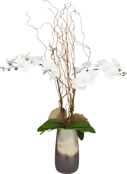 Yes, silk floral arrangements are particularly well-suited for humid climates where fresh-cut flowers might wilt or mold more quickly. The materials used in this arrangement—silk, handcrafted glass, and preserved natural elements—are stable and designed to hold their shape and color even in more humid environments. Unlike live plants, these silk orchids require no moisture management, ensuring they remain "crisp" and vibrant year-round regardless of your local weather conditions.