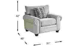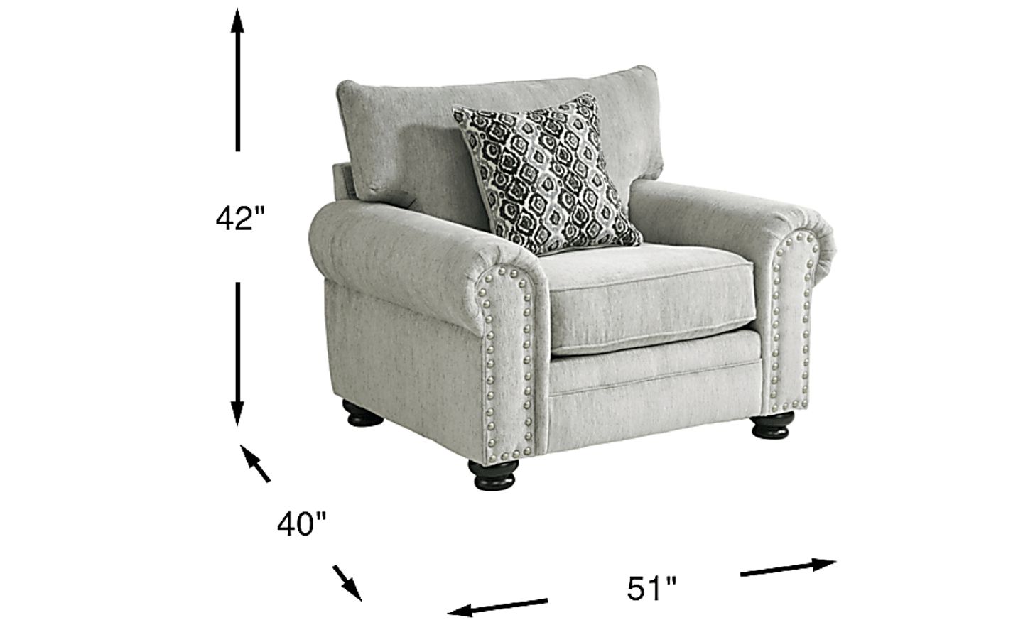 Bring elegant style to your living room with the Andrina Avenue chair. Upholstered in soft chenille fabric, it has a chic gray color. Lending a classic look are pleated roll arms featuring silver-finished nailhead accents. To help your piece last longer, the seat cushion is reversible. An included accent pillow adds unique flair with an ogee-inspired pattern. Bun feet in a black finish complete the aesthetic. 100% Polyester