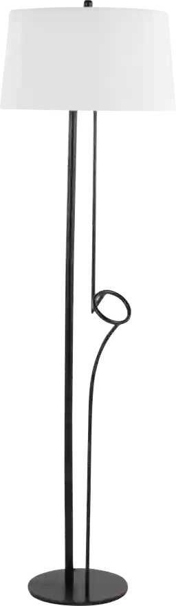 Asymmetrical in silhouette the Andusia floor lamp by has a black metal base and a white linen shade. This unique floor lamp will create an updated motif in any modern space. Customer assembly required.