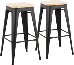 These stools are built for long-term stability using a robust black steel frame paired with a natural wood seat. The industrial-grade steel provides a strong, stationary foundation that is resistant to the daily wear and tear of a busy household. This combination of materials offers a sturdy yet lightweight seating solution that is easy to move as needed.