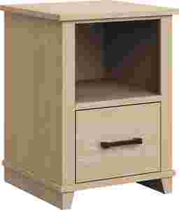 Bring home the feel of a luxury mountain resort with the Aneya 22in. one-drawer side table. Constructed of wire brushed oak solids and veneers, this end table boasts a rustic hazelwood finish and features an open shelf, one drawer with oil-rubbed bronze hardware and tapered leg base. The epitome of form and function for any room in your home, this tried-and-true design can be used in your home office to store essentials or showcase a table lamp and decor next to your favorite chair or bedside. Fully assembled upon arrival, this piece is ready to unbox and enjoy.
