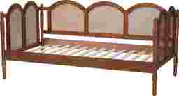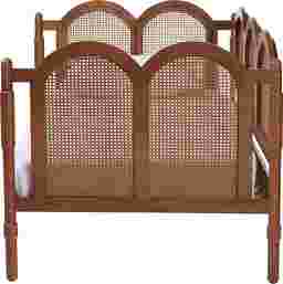 This piece is crafted from sturdy wood. Arched panels with woven rattan adorn the frame. The Angelbit utilizes wood slats ,eliminating the need for a box spring. Customer assembly is required.