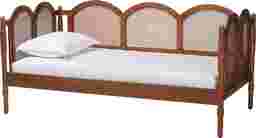 This daybed is designed to accommodate a standard twin-sized mattress. For a balanced feel that serves both as a comfortable sofa and a supportive bed, our experts often recommend a mattress thickness between 6 and 10 inches. This ensures the mattress sits at a height that allows the decorative arched panels and woven rattan to remain visible while providing ample cushioning for daily use.