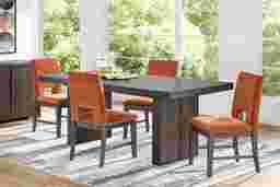 Angelica Brown 5 Pc Dining Room with Orange Side Chairs