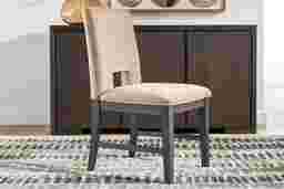 Both easy and elegant, laid-back charm gets an upgrade with the timeless style of the Angelica dining room. Featuring breathtaking white oak veneer work finished in a delectable brown, the 78-inch table makes a striking style statement and even extends an extra 18 inches with its included leaf. The double pedestal base is accented by a vertical stripe that hones in on the contemporary edge of the collection. Four beautifully upholstered tan side chairs complete this set with a signature knockout detail that brings a refined yet relaxed touch to every seat at the table.