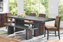Angelica Brown 6 Pc Dining Room with Gray Side Chairs and Bench
